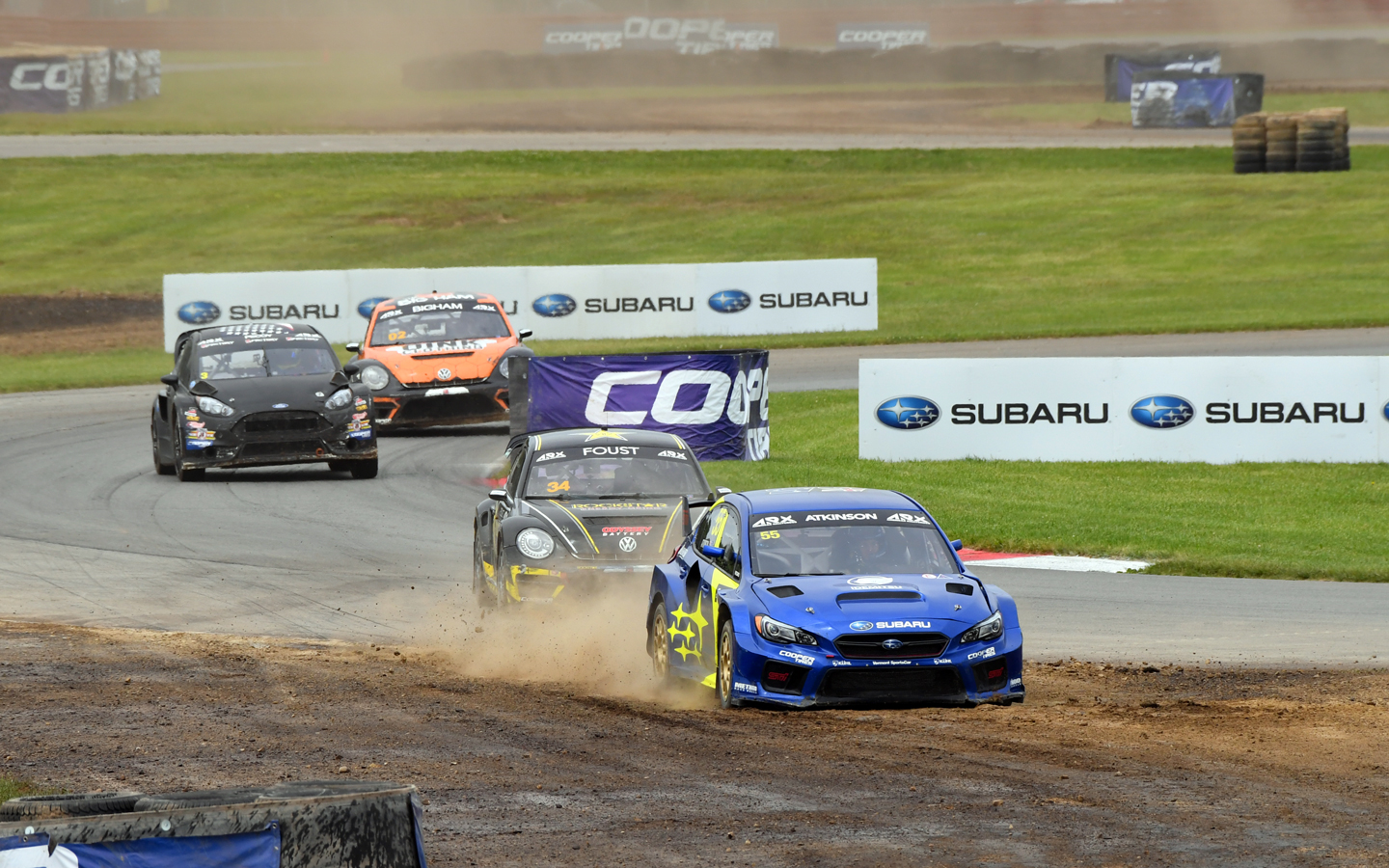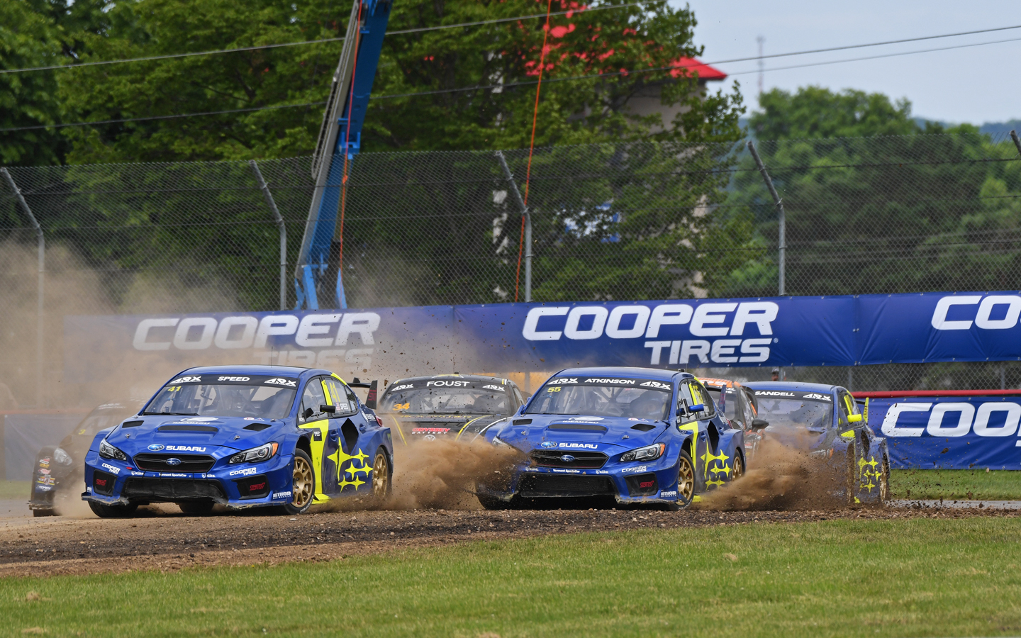 The Subaru team came into the 2019 season’s first event with a new lineup – adding four-time U.S. rallycross champion Speed to the pairing of Atkinson and Patrik Sandell – and new liveries featuring the Subaru brand’s classic blue and gold motorsports colors. Speed set the tone early by winning Saturday’s first qualifying session, while Atkinson and Sandell locked up third and fourth. After damage to both Speed and Sandell’s cars from contact in the second qualifying round, Speed finished the day in second position and Atkinson held third.